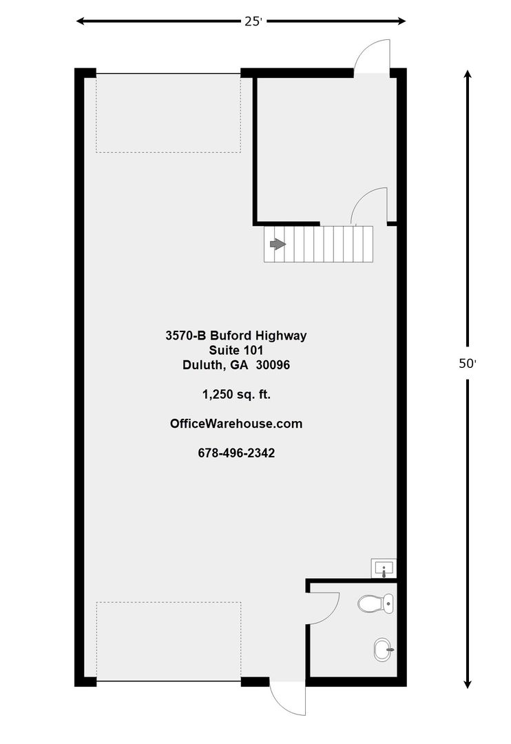 1,250 sf single bay industrial suite with office